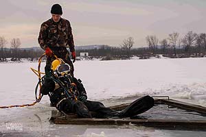 Jeges vízben merültek A kiképzési terv szerint januárban úgynevezett jég alá merülést hajtottak volna végre a szentesi MH 37. II. Rákóczi Ferenc Műszaki Ezred munkabúvárai, azonban az akkori tavaszias időjárás miatt erre nem volt lehetőségük. A március eleji kemény fagyok azonban lehetővé tették az elmaradt kiképzés pótlását.