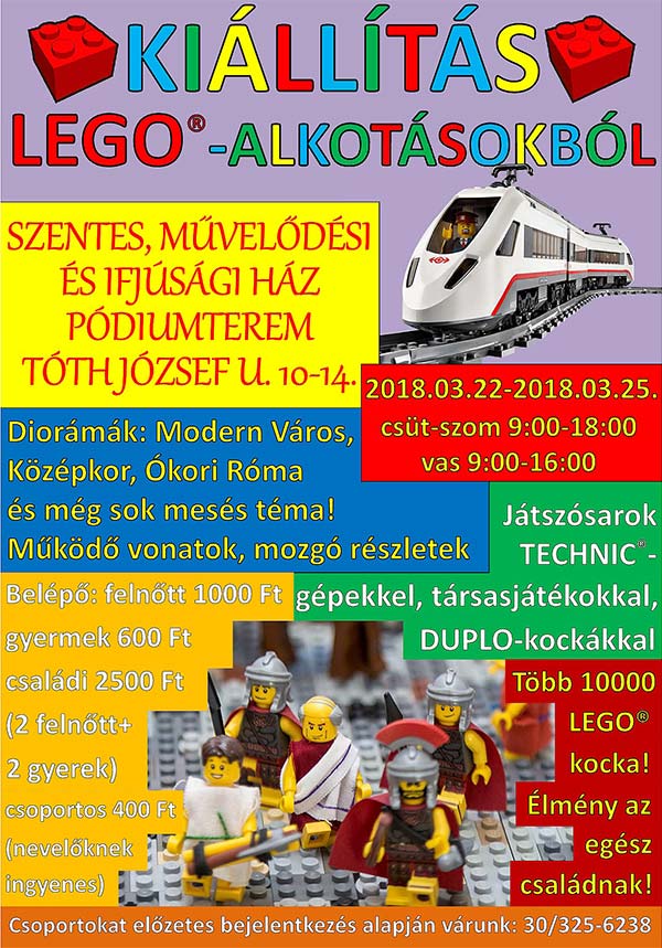 LEGO kiállítás 2018. március 22-25 között az Ifjúsági Ház pódiumtermében LEGO kiállítást rendeznek azokból a bizonyos kis kockákból. További részletek az alábbi plakáton!