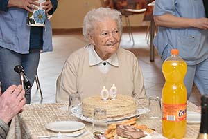Piroska néni "szép" kora Szentes város vezetése nevében köszöntötte 90. születésnapján Nagy Jánosné, Piroska nénit Szirbik Imre polgármester a Dr. Sipos Ferenc Parkerdő Otthon lakóját.