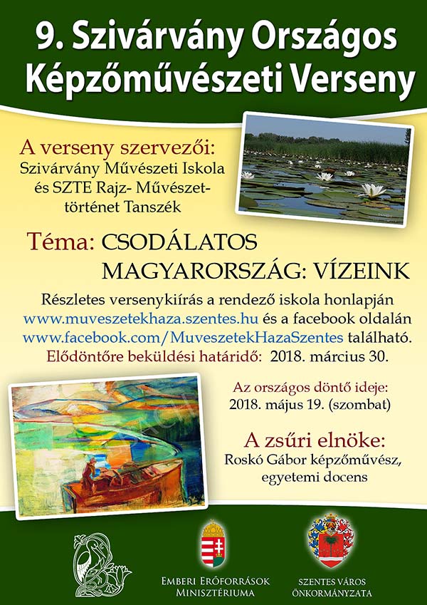 9. Szivárvány Országos Ebben a tanévben rendezi a szentesi Szivárvány Művészeti Iskola a tizenkettedik, számozva a 9. Szivárvány Országos Képzőművészeti Versenyt. A verseny sikerét és szakmai elfogadottságát jelzi, hogy évenként az elődöntőre 600-800 db kiváló pályamű érkezik Magyarország neves képzőművészeti műhelyeiből, iskolákból, határon túlról és egyéni pályázóktól. A szervezők számára a legnagyobb öröm az, hogy a versennyel is segíthetik a tehetséges fiatalok boldogulását.