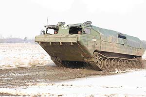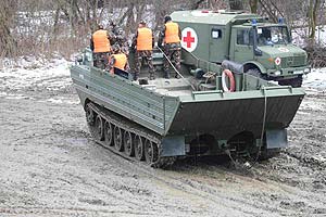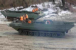 A PTSZ-M közepes, lánctalpas úszógépkocsi olyan különleges jármű, amely képes különböző vízi akadályok leküzdésére, miközben rendkívüli teherbírása miatt alkalmas lövegek, kerekes és lánctalpas tüzérségi vontatók, páncélozott szállítójárművek és gépkocsik, valamint emberek szállítására vízen 10 tonna összsúlyig. Ezért ez a jármű katasztrófavédelmi helyzetben egyaránt alkalmazható szárazföldön és vízen. A Magyar Honvédség hét alakulatától érkezett leendő gépkezelők a hékédi gyakorlótéren gyakorolták a szárazföldi vezetést, ezt követően pedig - a tiszai gyakorlótéren - a vízi vezetéssel ismerkednek. Itt elsőként megtanulták a vízbehajtás és a vízből történő kijövetel fogásait, majd ezek után megismerkednek a csörlőzéssel, azaz az önmentés mozzanataival.