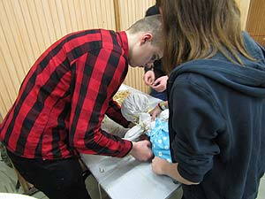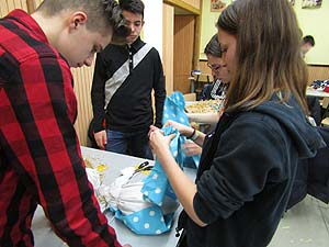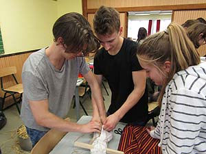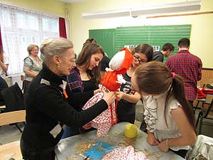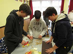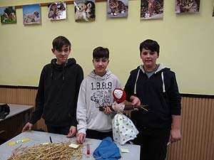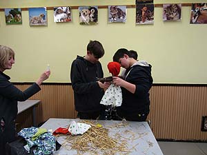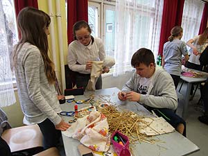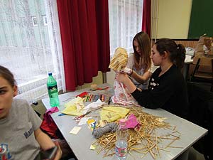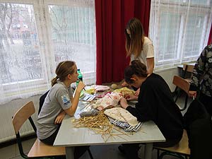 A feladatlap kitöltése után, még mindig egyénileg számítógépen kutatták a hungarikumok eredetét, térképen kellett megjelölniük a kiállított tárgyak földrajzi helyét, ill. 3 kép összerakása után újabb magyar értékeket ismerhettek fel. A közös csapatmunka egy kisgyermek nagyságú kiszebáb elkészítése volt. Ez a feladat is koncentrációt, ügyességet, pontosságot, együttműködést kívánt.