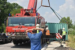 Bár a híradások felborult kamionról szólnak a szentesi elkerülőn, de ott egy felborult kamion sem volt 2018. június 11-én. Az igazság az, hogy egy kamion lehajtott a laza szerkezetű padkára, hogy megnézze, hogy hova is kell vinnie rakományát, és közben a több tonnás autó kerekei alatt megindult a padka.