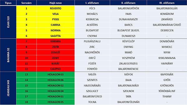 A május 24-ei hajósorsolást végül tehát 51 település várta izgatottan, hogy megtudja melyik hajóval kezdi meg június 9-én az amatőr vitorlás pályaversenyt. Komoly vitorlás tudásra és múltra egyébként egyik csapatnak sincs szüksége, hiszen az egyforma, ún. one design vitorláshajókat a szakképzett kormányossal együtt a BAHART biztosítja, ezzel is megteremtve az egyenlő indulási esélyeket. Minden vitorlásra 7 fős települési legénység ül fel a hivatalos, előre kijelölt és szakképzett kormányos mellett. Így küzdenek meg a szombati 3 előfutamban (18+18+15 csapat), majd a vasárnapi negyeddöntőkben (24 csapat), az elődöntőben (12 csapat) és döntőben (6 csapat) a dobogós helyekért. Természetesen idén is szinte minden hajón találtunk olyan résztvevőt, akinek mégis csak van valamilyen kötődése a vitorlázáshoz, de szép számmal vesznek részt sportolók, színművészek, televíziós személyiségek, egyéb hírességek is a csapatok legénységeiben.