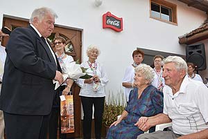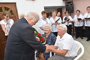 A család mellett a város nevében Szirbik Imre polgármester köszöntötte a gyémántlakodalmas párt a Hunyadi János utcában.