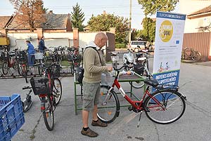 Varga Lajos a VARGA BRINGA vezetője immáron második éve csatlakozik a programhoz. Ha a nyereg alacsonyan vagy magasan van, vagy pl. a kormány kényelmetlen magasságban, akkor most lehetősége volt bárkinek, hogy az akció keretében megigazíttassa azt amíg a bevásárlást elintézi.