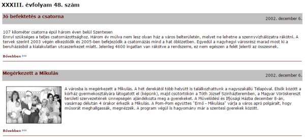 Fontos, hogy az újság lapszámai szabadon böngészhetők az e-Könyvtár Szentes digitális helytörténeti gyűjteményben az ekonyvtar.vksz.hu webcímen - sok más szentesi vonatkozású dokumentum, kép, hang- és videofelvétel mellet. Az e-Könvytárból betallózható lapszámok PDF-állományai ezen a héten DVD-korongokon is elérhetővé váltak. Az első lemezen 1968-2000-ig, a másodikon 2001-től a 2014 decemberi utolsó számig.