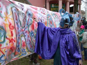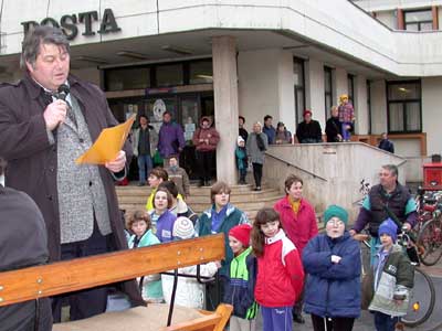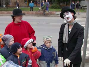 A Luther téren már nagy tömeg várta a busókat, de amíg oda érkeztek, addig Charlie Chaplin pantomimezett és a Jégtündér rajzolt a gyerekeknek.