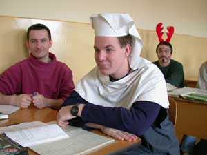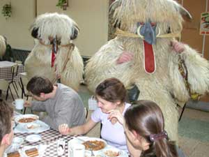 A télbúcsúztató karnevál első programja a menzai riogatás volt. A diákok legnagyobb meglepetésére 40 db busó jelent meg a menza ebédlőjében. Futott mindenki ki merre látott, és ezt ajánlják a TÉLNEK is.