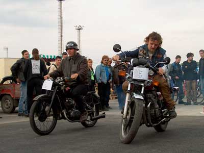 A városi felvonulásnál kékes füst borította a város főutcáját, mert ezeknek a motoroknak nemcsak a benzin fogyasztása jelentős, hanem az olajfogyasztás is.