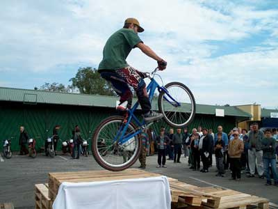 Biciklis Triál bemutatót láthattunk a veterán-motorok bemutatóján.