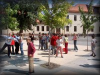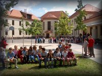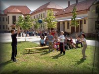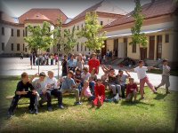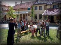 A nyári élmények megvitatása az udvaron |