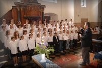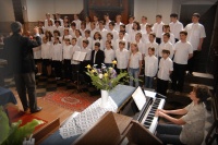 | Májusban még a református templomban az Egyházzenei találkozón szerepelt a felsősök kórusa Nagy János tanár úr vezetésvel |