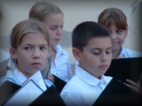 A hangszórókból minden teremben hallhatták a műsort a gyerekek. |