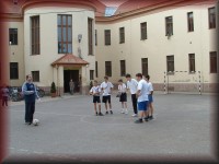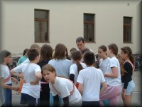Tóth Béla tanár úr rendezi a csapatokat (5.a, 5.b) |