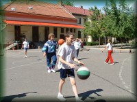Az 5.a-sok támadó játékot gyakorolnak, ismerkedés a kosárlabdával |