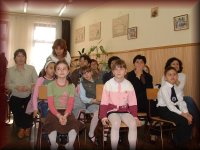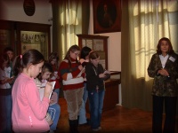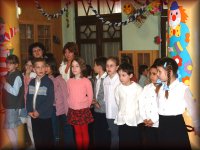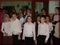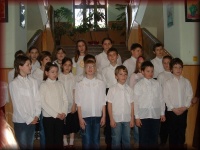 Az iskola 4. osztályos kamarakórusa Kodály-bicíniumokat adott elő |