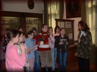 | Csige Istvánné Erzsike néni mutatja be a kiállítást |