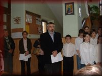 Az alsó tagozatos területi szintű Petőfi-szavalóverseny megnyitója az előcsarnokban |