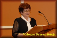 Kis-Rácz Antalné a CD/DVD-t mutatja be |