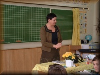 Takácsné Zsuzsika néni énekórát tart a 4.b osztályban |
