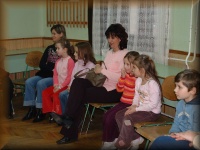 Józsa Józsefné Jusztika néni magyaráz az ovisoknak |