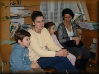 | Anyukák a leendő iskolások társaságában |