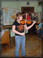 Horváth Alexandra (4.a) a hegedűt mutatja be |