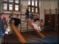 A tornatermeben igen népszerű a csúszda |