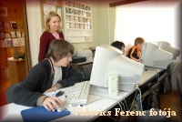 Majtényi Laura a számítógép előtt |