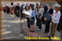 Az iskola kórusa népdalcsokrot ad elő |