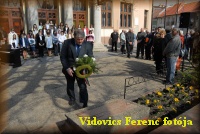 Makra Zoltán helyezi el az emlékezés virágát |