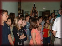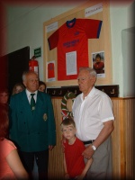 Szakács Ernő adományozó és Tóth Isván a tabló előtt |