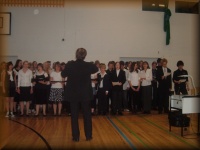 Pusztai László mezének ünnepélyes átadása az iskola udvarán |