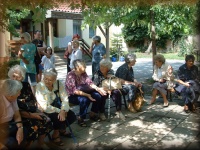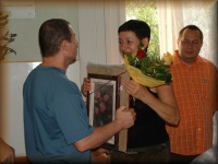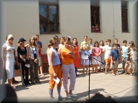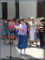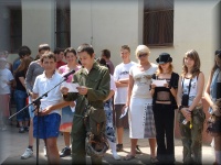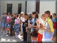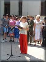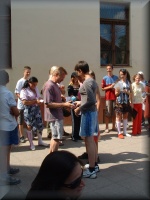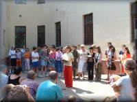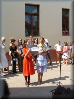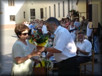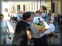 | Virágátadás az udvaron |