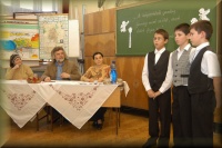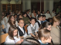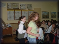 | Újszentesi vendégek a Deák F. iskolában egy énekórán |