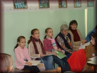| Mélykútiné Németh Kornélia népdalt tanít a gyerekeknek |