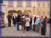 A 4.a osztály műsorral kedveskedett a járókelőknek. Kísérők: Mihály Ágnes és Takács Pálné |