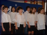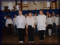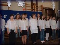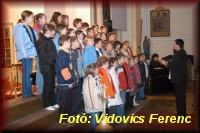 | Nagy János tanár úr vezényli a felső tagozatos ének-zenések kórusát |