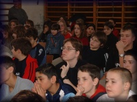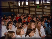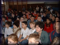 | Az alsó tagozatos gyerekek figyelik az előadást |