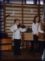 | A karácsonyi hangversenyen a kiskórust Takács Pálné Zsuzsika néni vezényelte. |