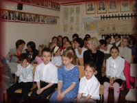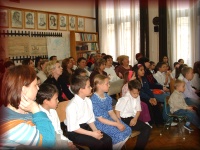 | Alsó tagozatos területi szavalóverseny megnyitója az aulában |