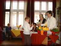 | Török Karcsi (4.b) átveszi a megérdemelt jutalmát |