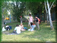 | Pihenő és nézelődő gyerekek és felnőttek |