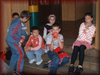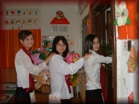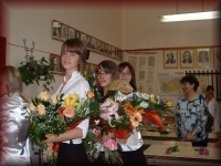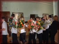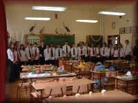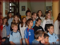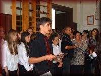 Az énekteremben a 8.b osztályosok készülődnek a búcsúra |
