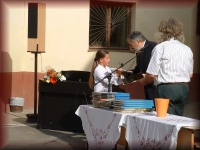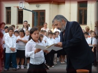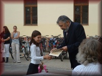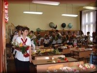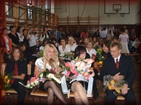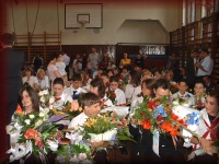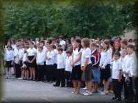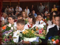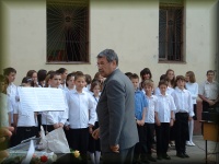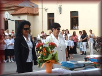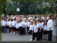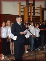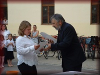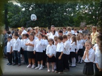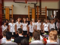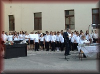 | Tanévzáró ünnepély az iskola udvarán |