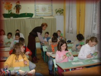 | Szilvi néni a 9-es teremben segít az apróságoknak |