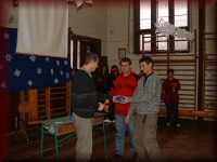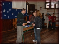 Berényi Miki (7.b) veszi át a megérdemelt jutalmát Tóth Béla tanár úrtól |