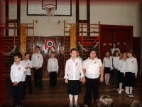 A 3. b osztályosok színvonalas műrt mutattak be március 15-én. |