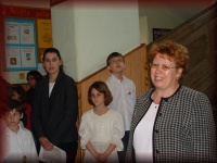 Mihály Béláné irodavezető köszönti a vendégeket |